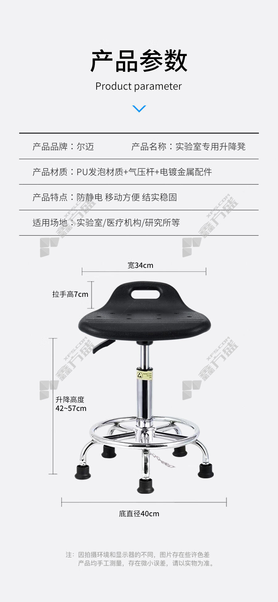 商品名称: 尔迈防静电实验凳黑色升降高度 固定脚 EM-SYD-05 42-57cm