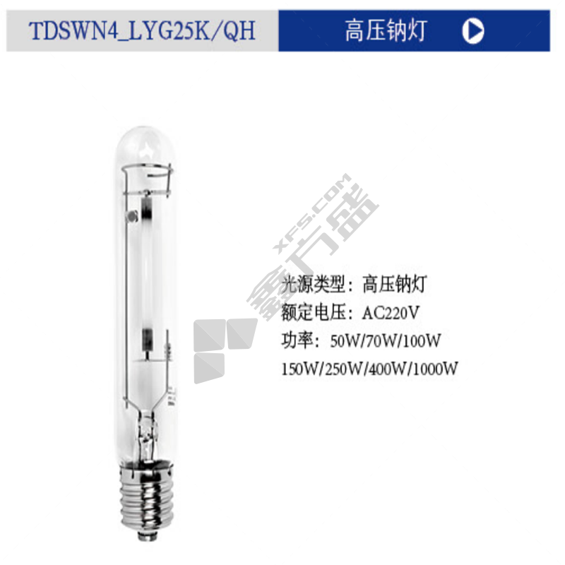 • 龙跃 高压钠灯. TDSWN4--LYG25K/QH 100w 高压钠灯.