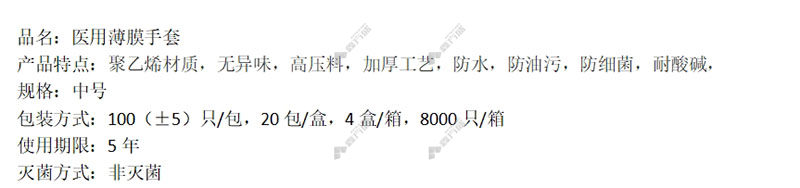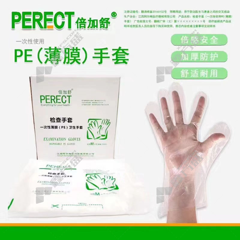 商品名称: 倍加舒 一次性薄膜PE卫生手套 M 透明色