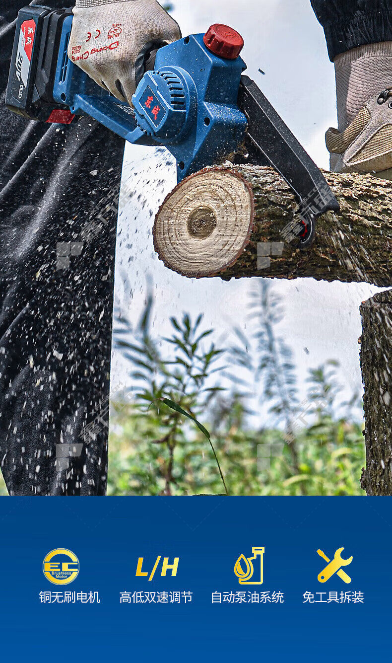 • 东成 DCML20052BDM 充电式无刷电链锯 00001230022 640W 120mm 8600r/min