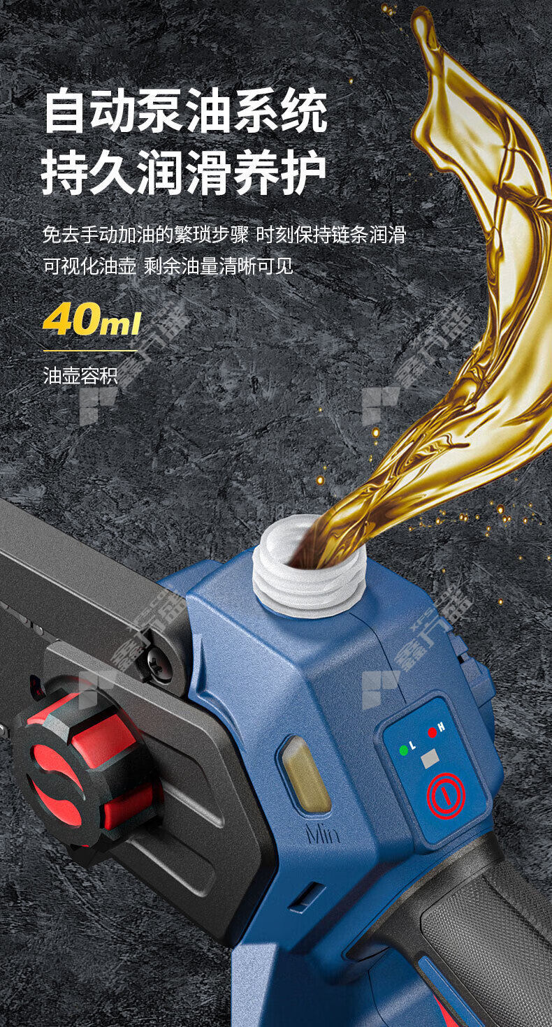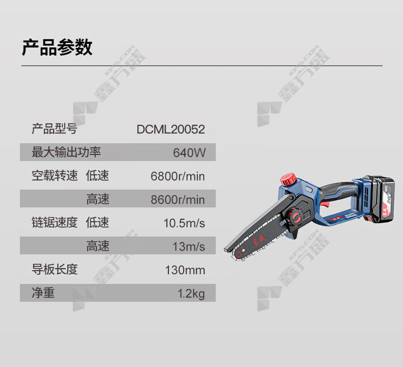 商品名称: 东成 DCML20052BDM 充电式无刷电链锯 00001230022 640W 120mm 8600r/min