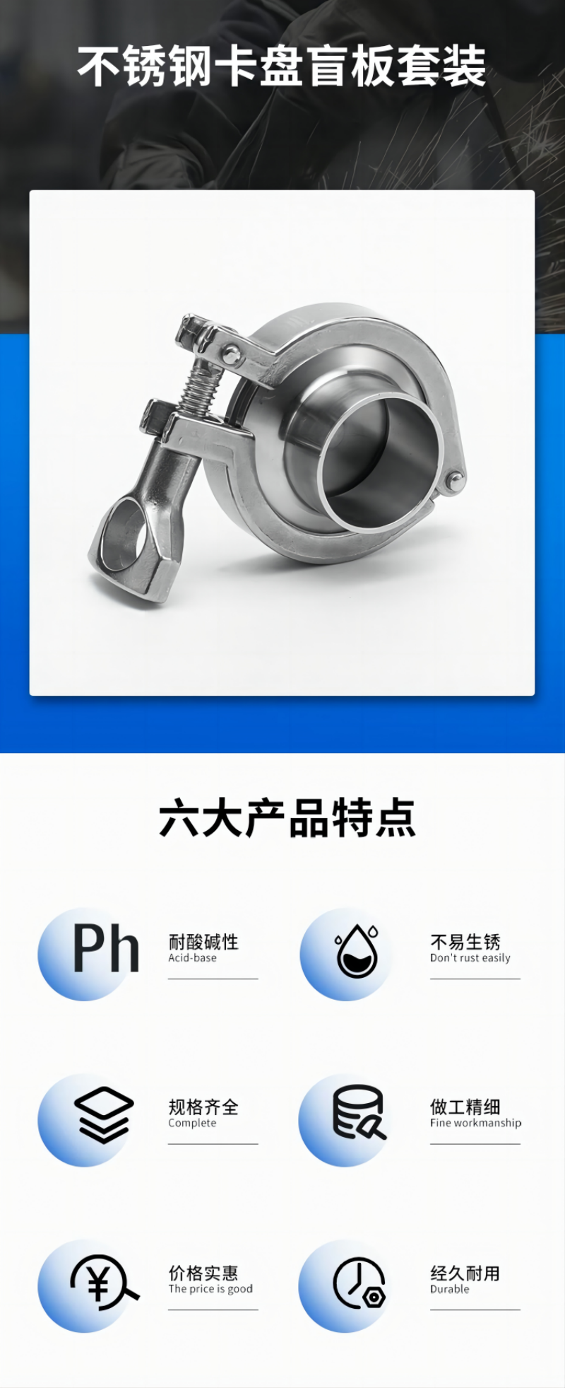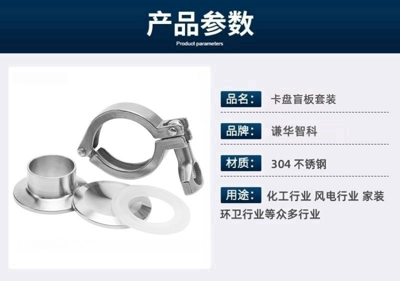 商品名称: 谦华智科 304不锈钢卡盘盲板快装焊接套装 管外径57mm 卡盘外径77.5mm
