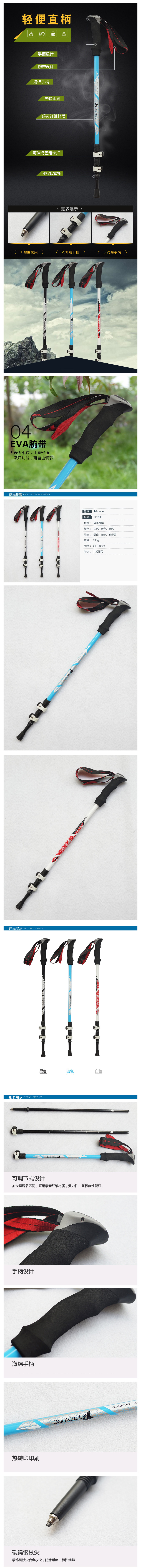 商品名称: 三极户外 TP3908 外锁三节登山碳素轻便伸缩登山杖 伸缩范围65-135cm 198g 蓝色 TP3908