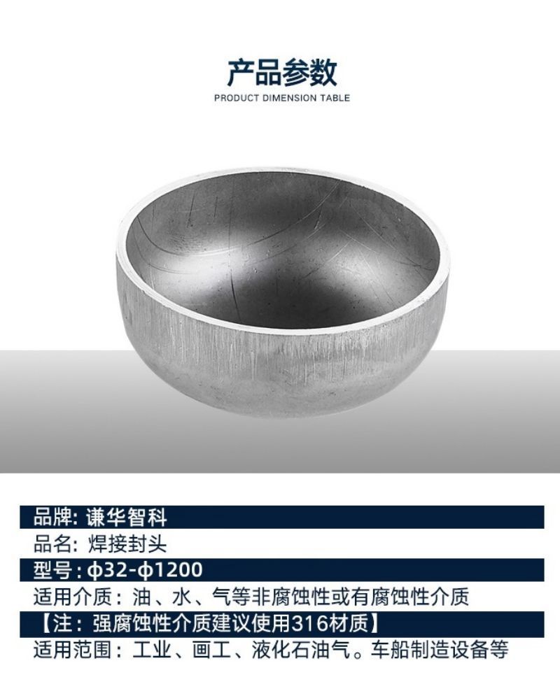 商品名称: 谦华智科 304不锈钢平底椭圆焊接管帽 外径60 厚4 高24mm