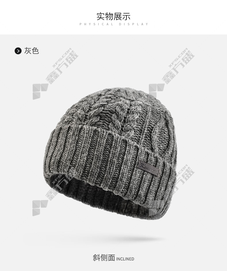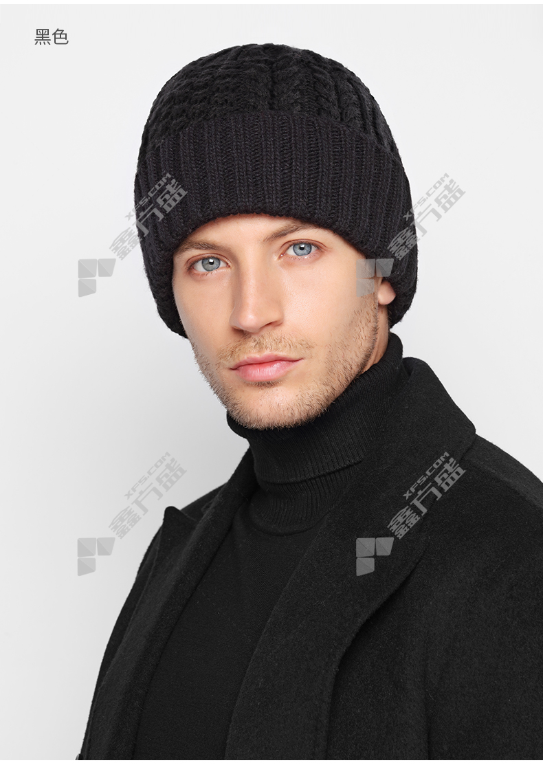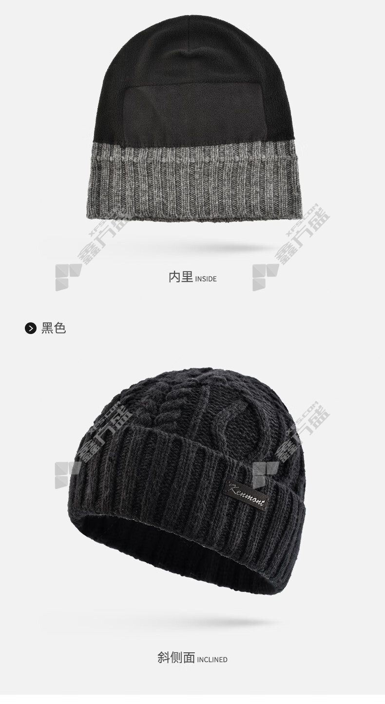 商品名称: 卡蒙 KM-9405羊仔毛绞花抗菌发热抗寒针织帽 KM-9405 均码 黑色