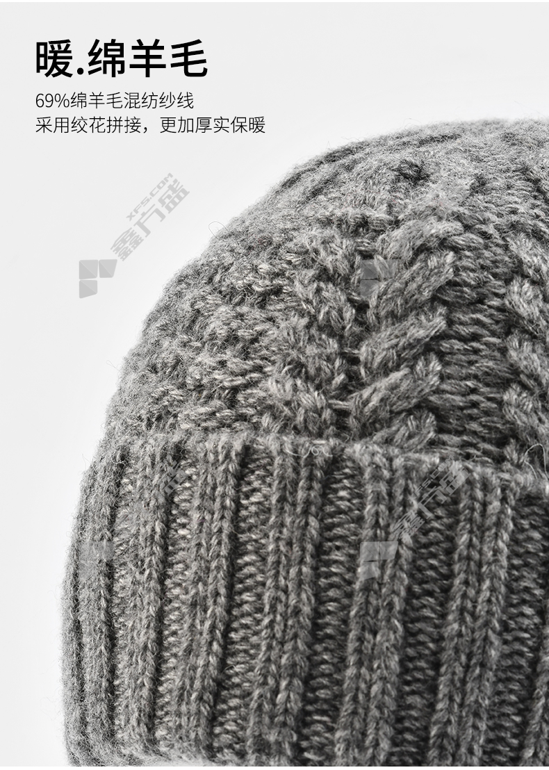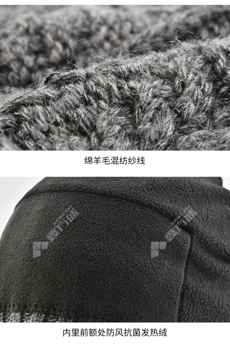 防寒帽材质:69%绵羊毛 31%锦纶