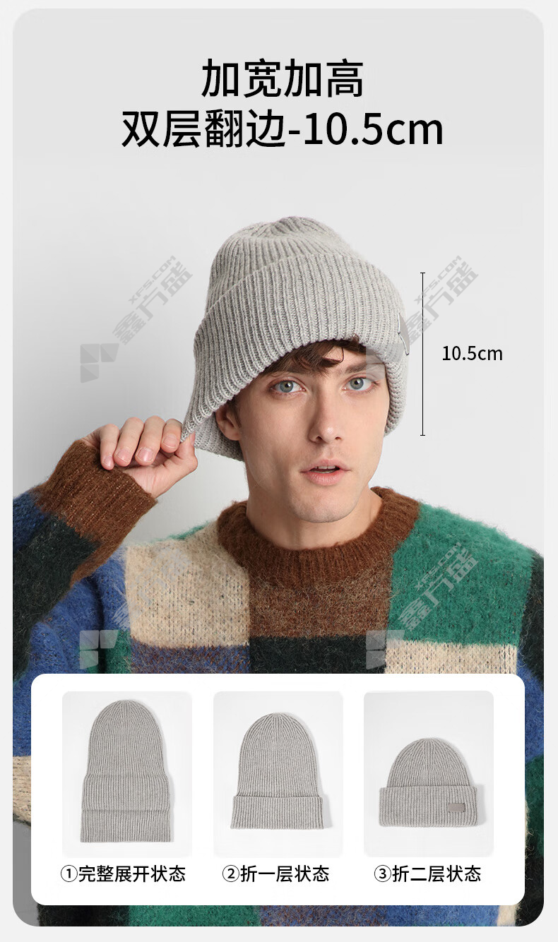 商品名称: 卡蒙 KM-9495绵羊毛双层护额情侣款保暖针织帽 KM-9495 均码 奶油米
