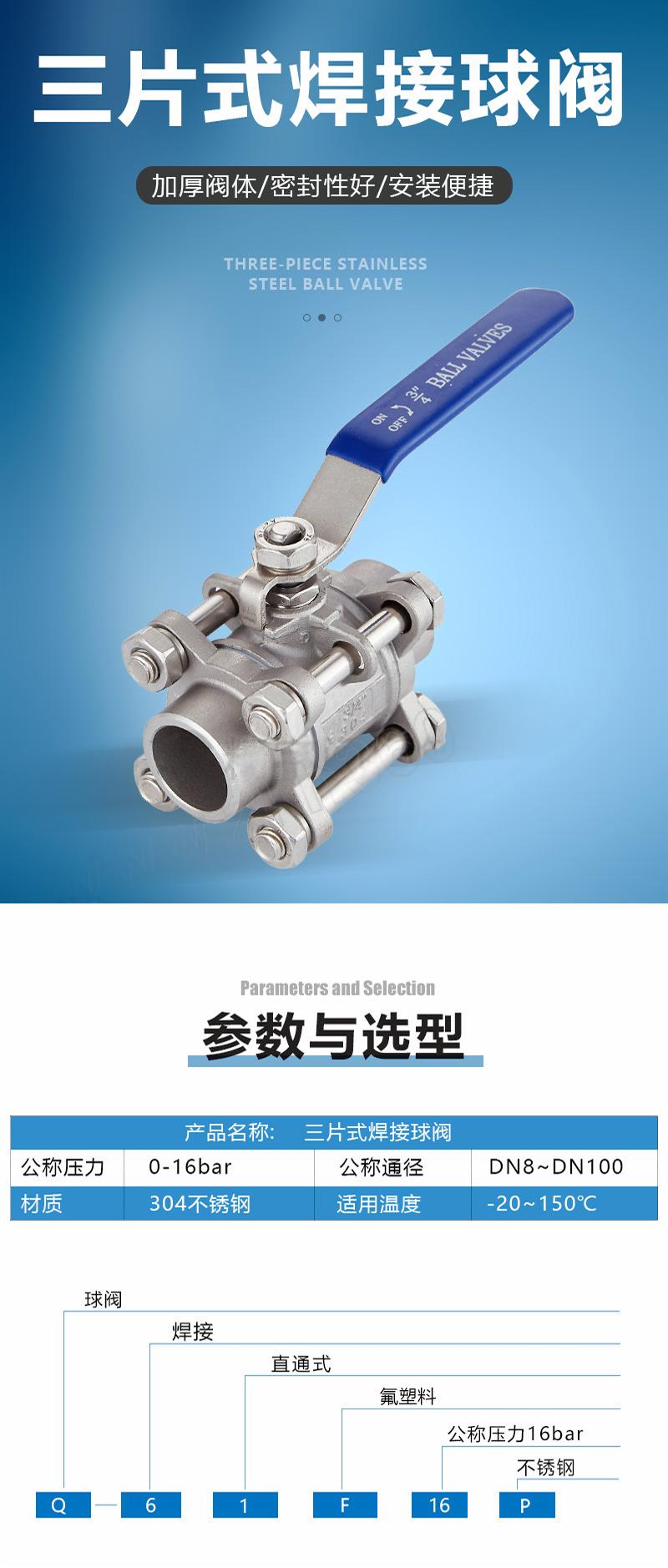 商品名称: 杰流 三片式对焊手动球阀 Q61F-16P DN25