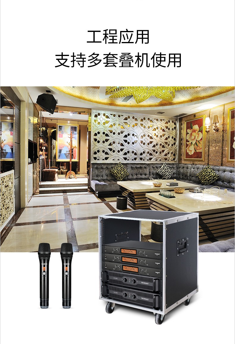 包装清单:接收机*1台、音频传输线*1条、天线*2支、防滚圈*2个、AA电池*4节、电源适配器*1个、手持式麦克风*2支、角码*1套、尾套*2个、使用手册*1份