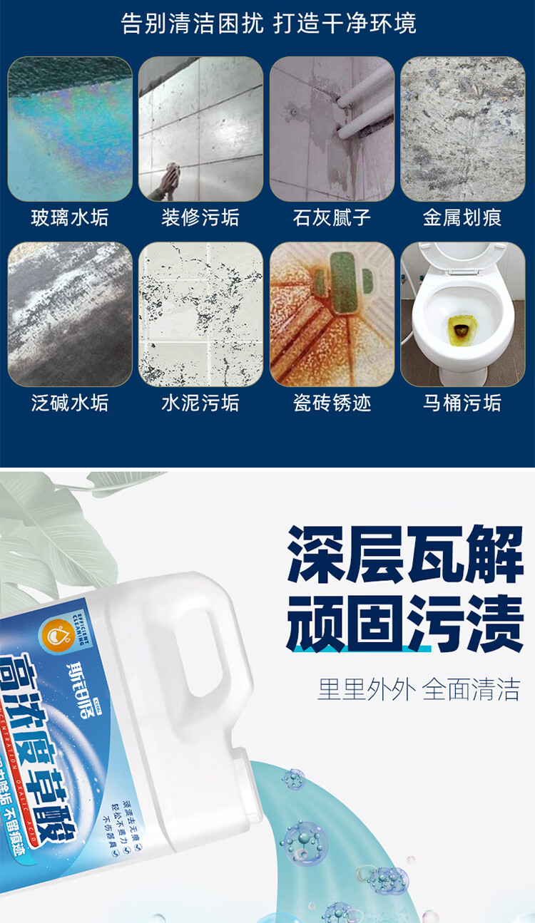 清洗剂适用场景:地板瓷砖、外墙壁、陶瓷等