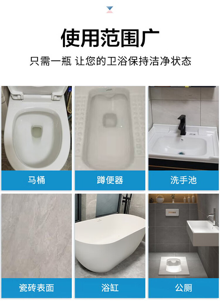 清洗剂适用场景:陶瓷、瓷砖、玻璃、亚克力等
