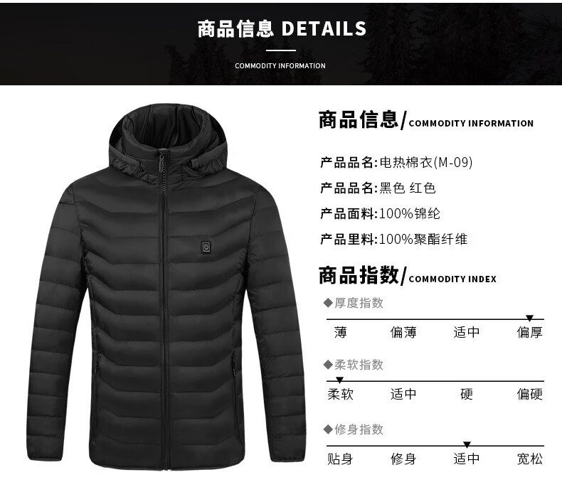 商品名称: 鸣固 冬季十一区发热电加热棉服 XXL 红色 MG-SB-5069