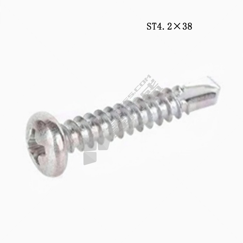 商品名称: 十字槽华司头自钻自攻螺钉. 不锈钢410本色全牙厂标十字槽华司头自钻自攻螺钉ST4.2×38·耐腐蚀·精度高·通用性强·不易生锈·使用寿命长·多用于建筑、建材、家装