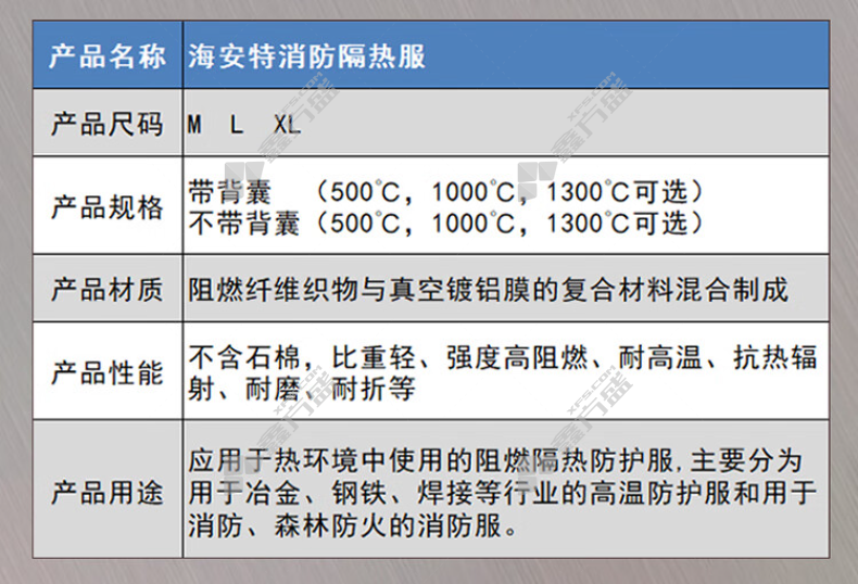 商品名称: 海安特 RGF-F-H-2 1000℃不带背囊隔热服 L 银色 RGF-F-H-2