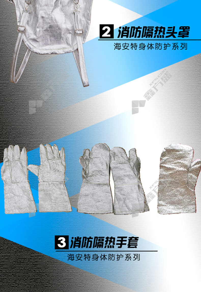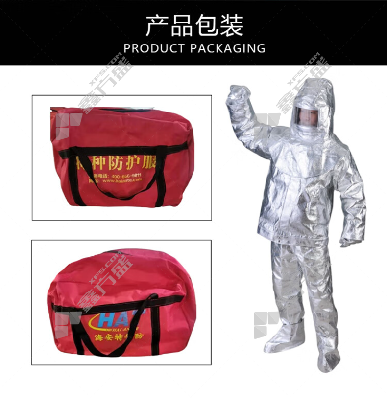 包装清单:隔热服*1件、消防隔热头罩*1个、隔热手套*1副