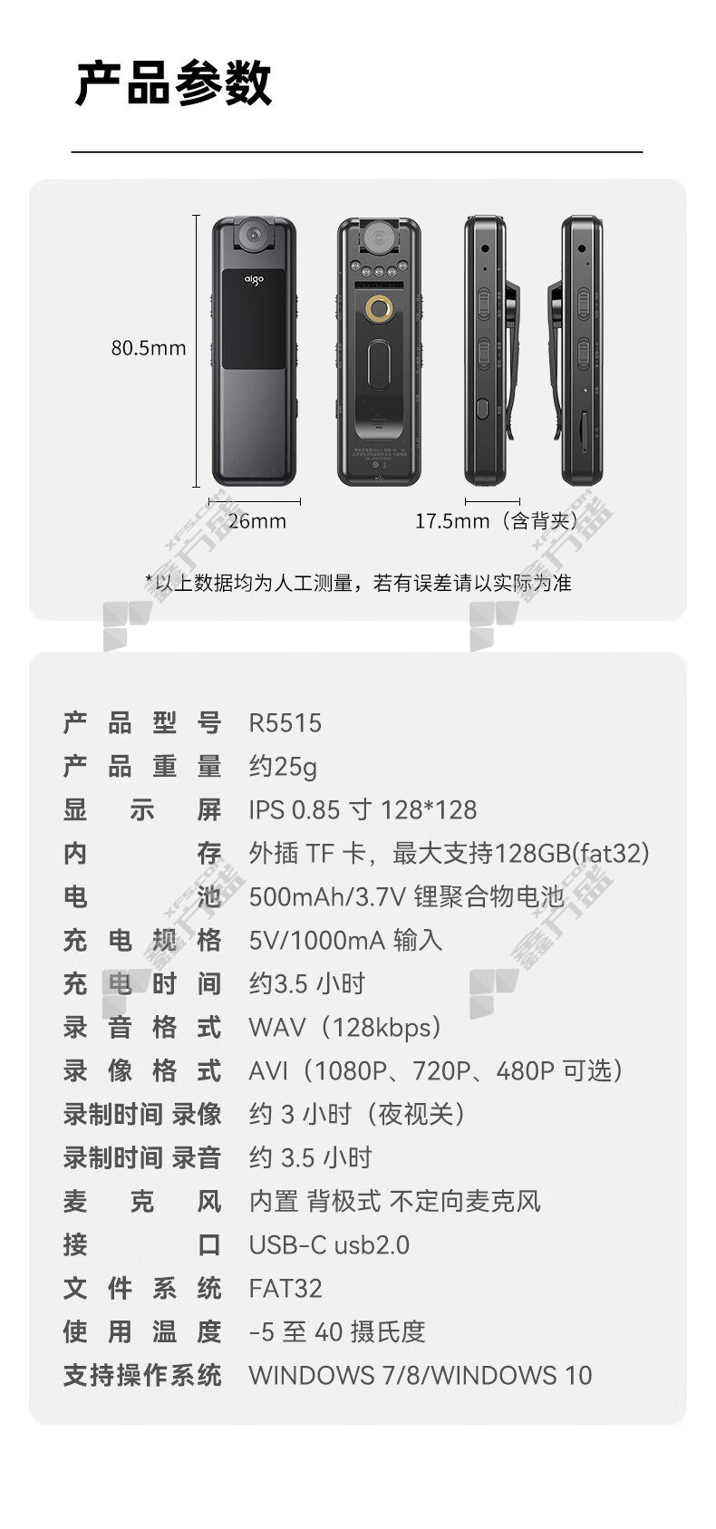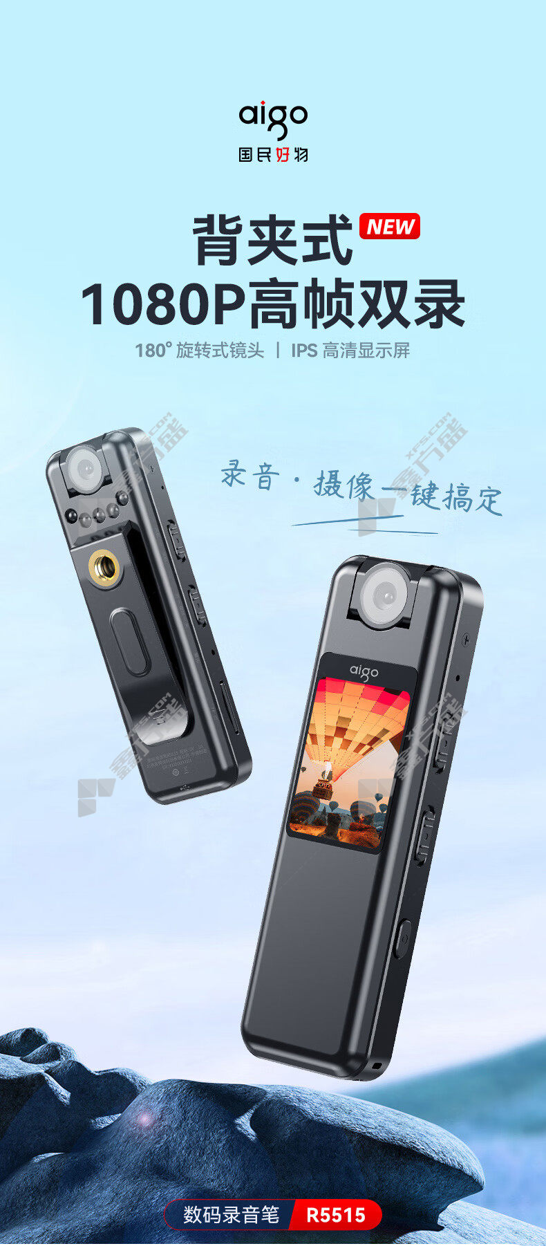 • 爱国者 R5515专业高清降噪录音录像器 64G 黑色 R5515