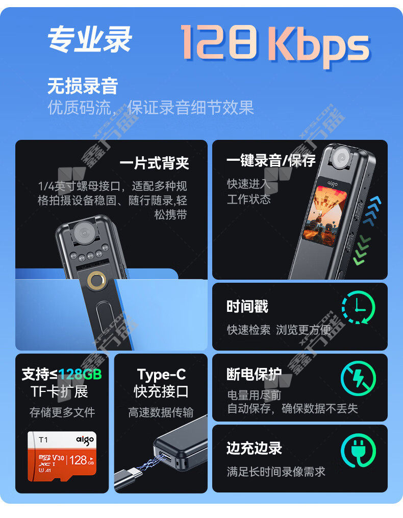 商品名称: 爱国者 R5515专业高清降噪录音录像器 64G 黑色 R5515