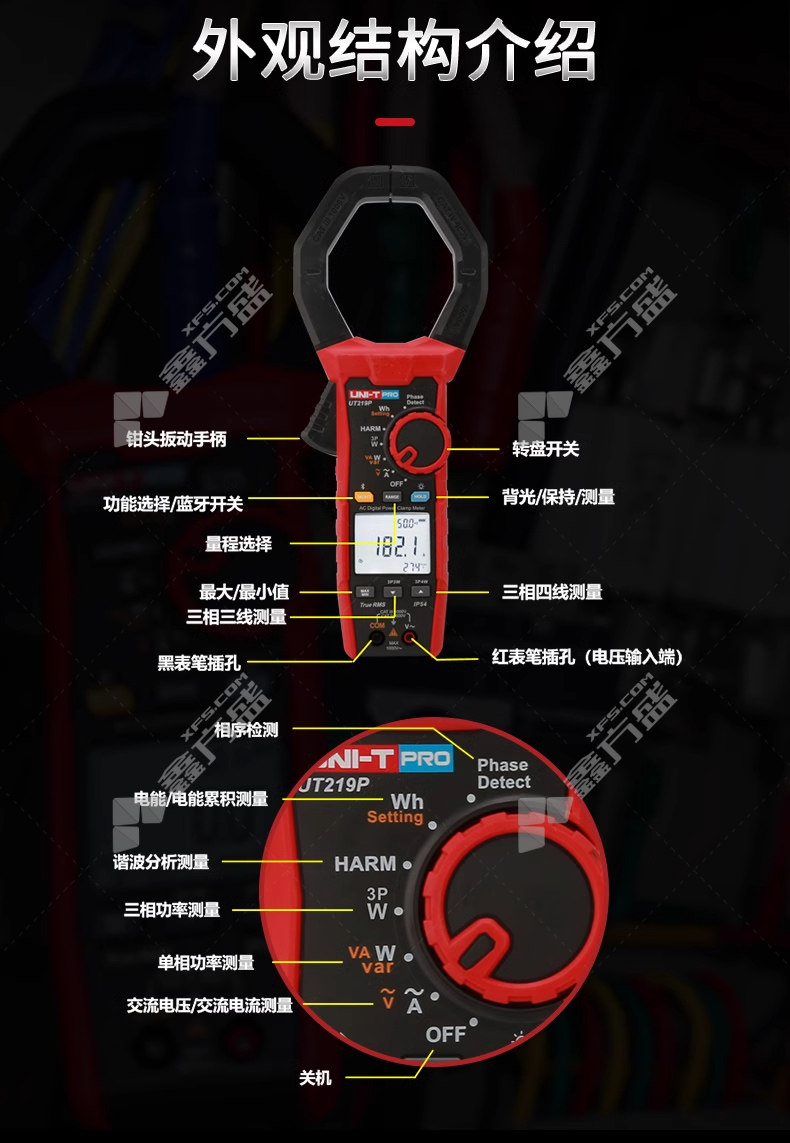 商品名称: 优利德 手持式谐波交流功率钳表 85*75mm UT219P