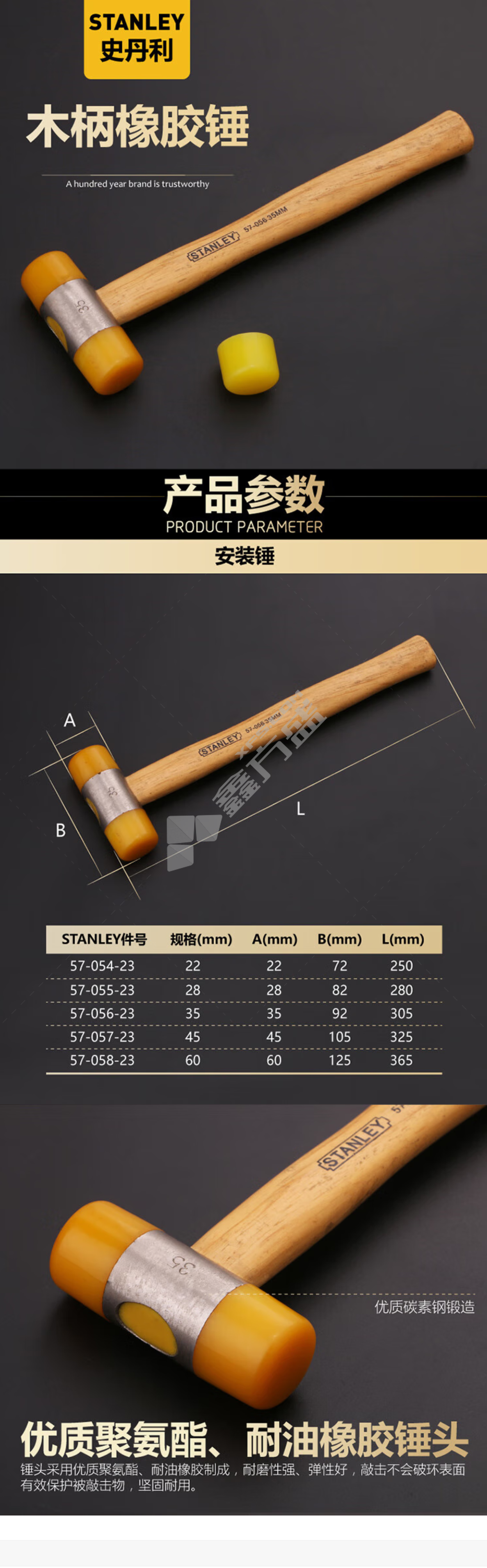 商品名称: 史丹利 锤. 57-056-23 木柄安装锤35mm..
