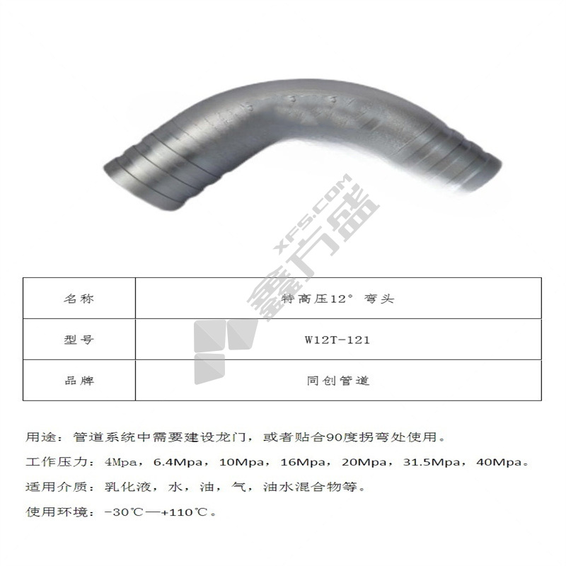 商品名称: 弯头. W12T-121 16Mn特高压12°.