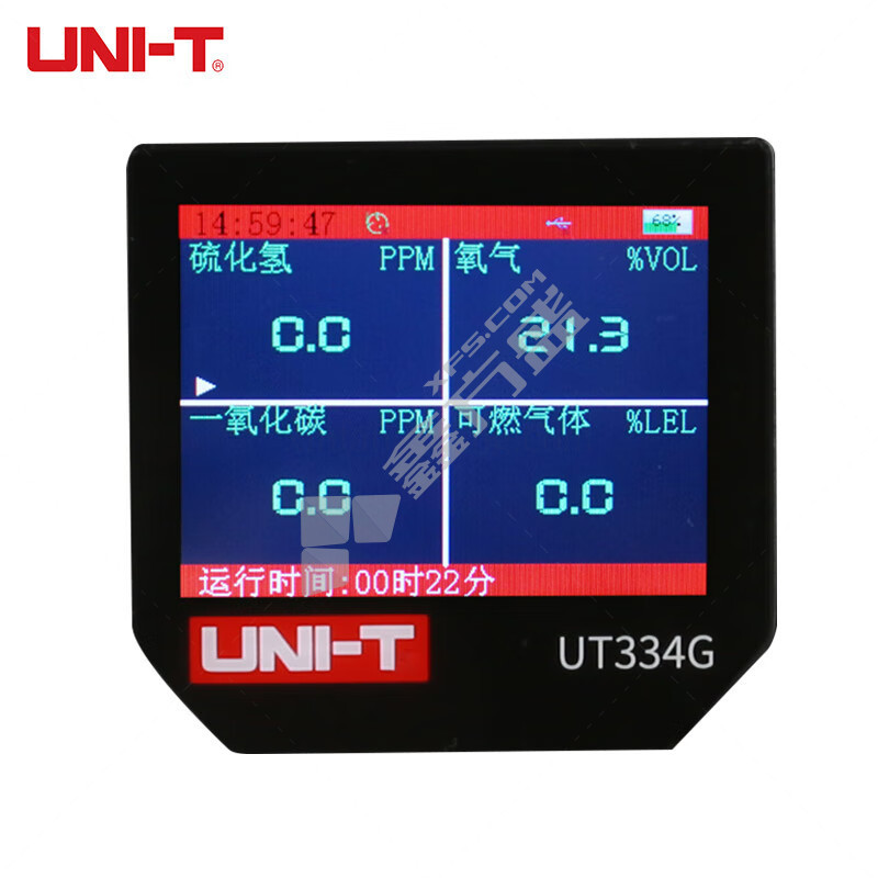 商品规格:UT334G+ 检测气体:氧气、一氧化碳、硫化氢、可燃气体,测量范围:氧气0-30%VOL,一氧化碳0-1000PPM,硫化氢0-100PPM,可燃气体0-100%LEL;具有测量曲线周期显示,DD.