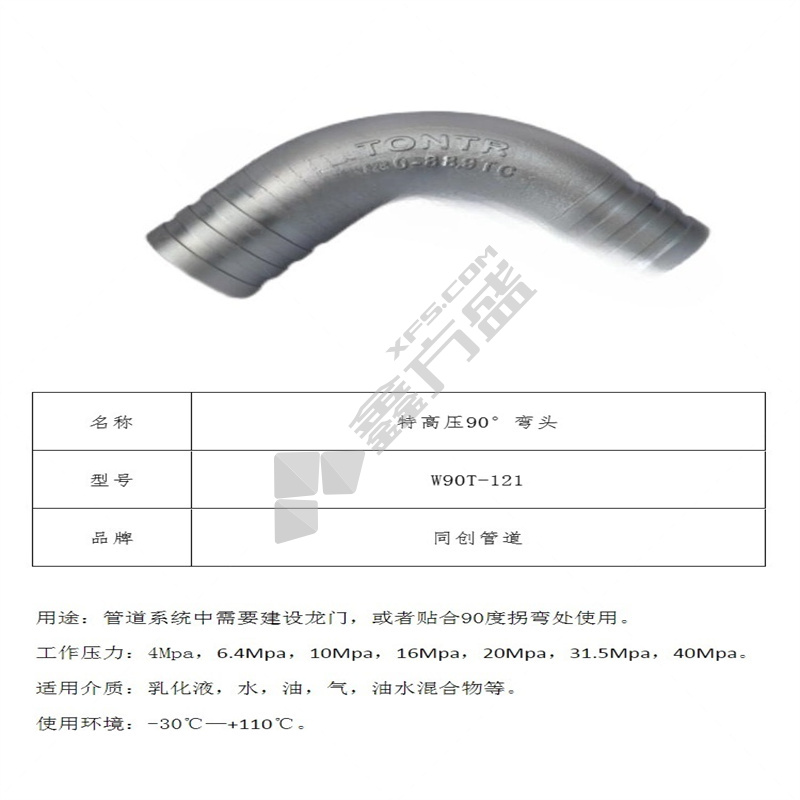 商品名称: 弯头. W90T-121 16Mn特高压90°.