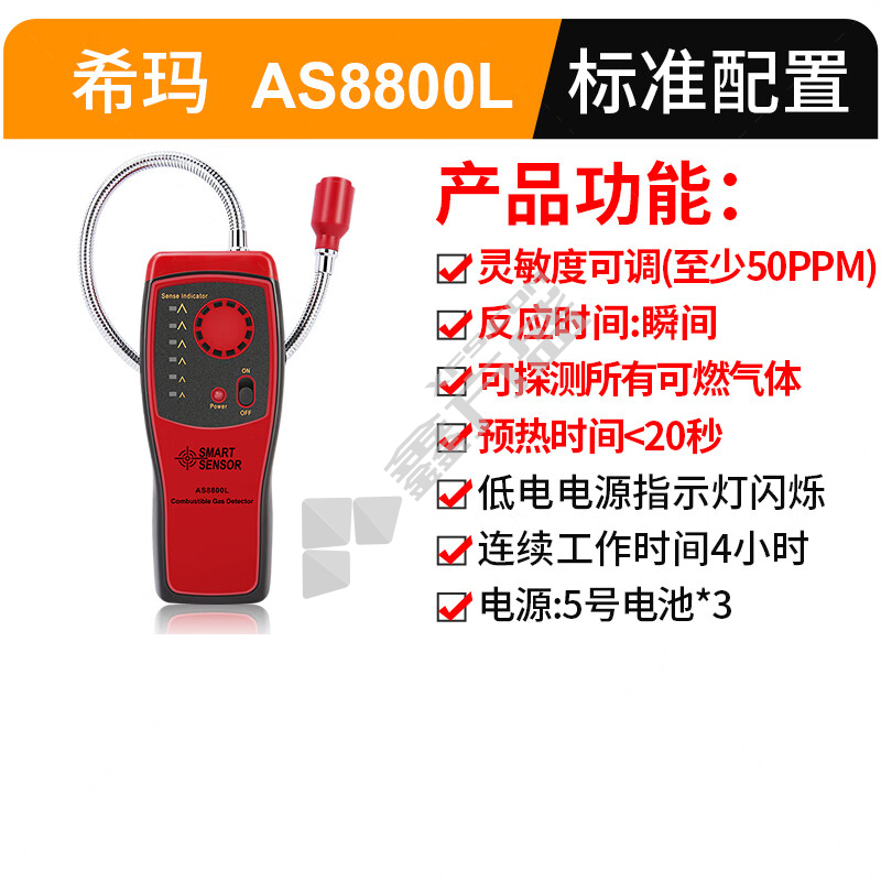 商品名称: 可燃气体检测仪. AS8800L 普通电池版.
