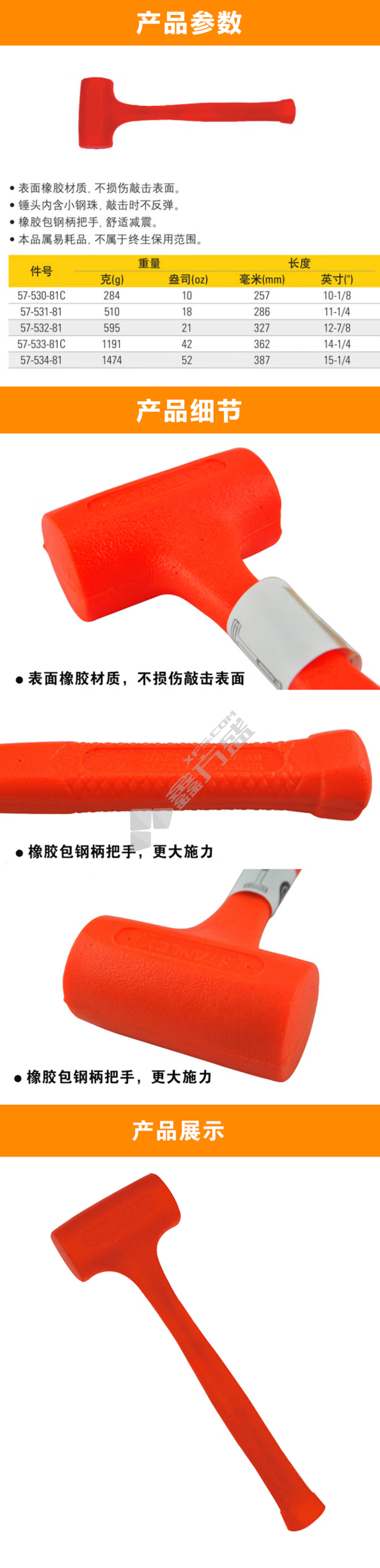 商品名称: 史丹利 锤. 57-531-81 防震锤18oz..