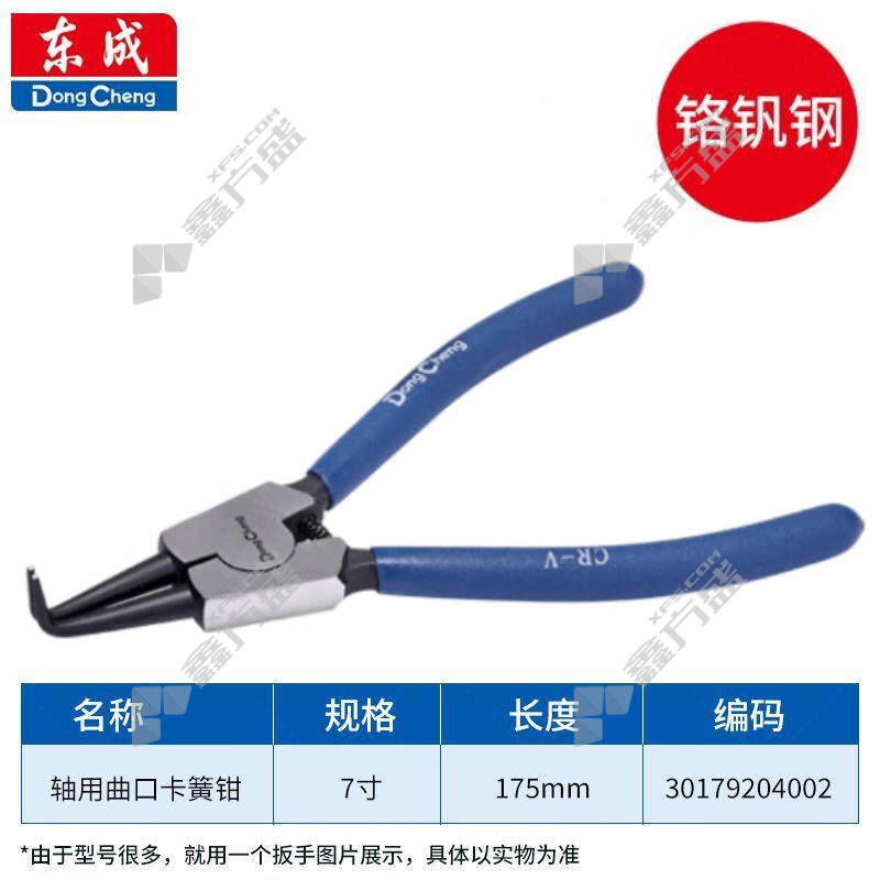 商品名称: 东成 轴用曲口 卡簧钳 30179204002 19-60mm 7” 175mm