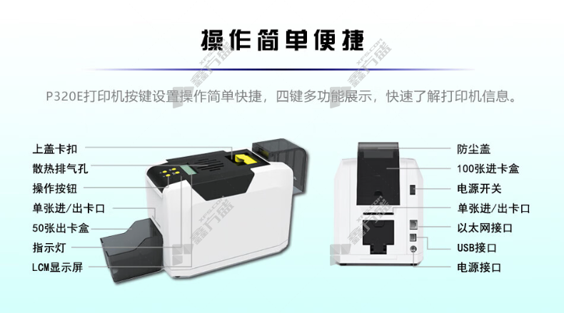 证卡打印机进出卡槽容量:进卡盒容量100张卡 出卡盒容量50张卡