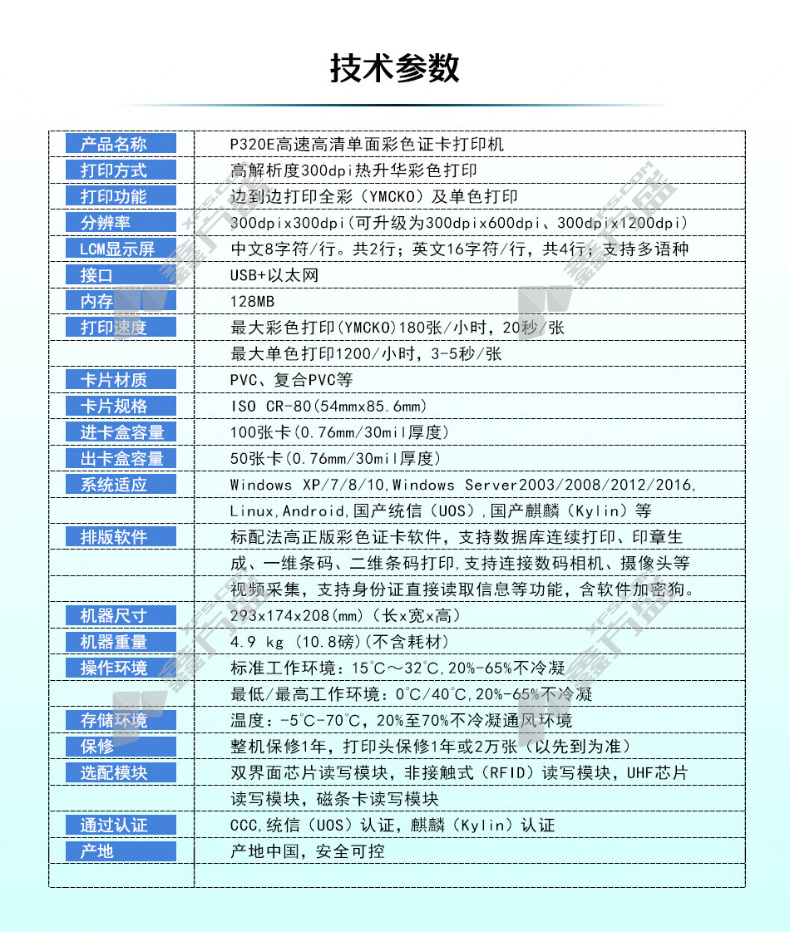商品规格:P320E/单面打印/USB+以太网