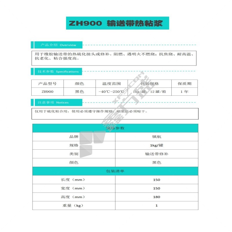商品名称: 输送带热粘浆.. ZH900 1kg/罐..