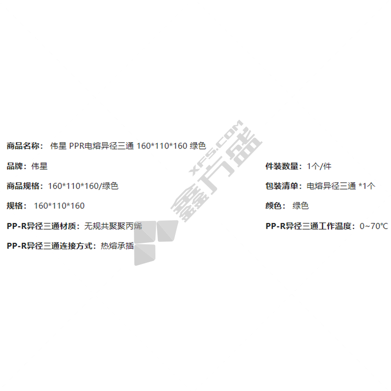 商品名称: 电熔异径三通.. SDR11dn160×110×160PE-RTII型..