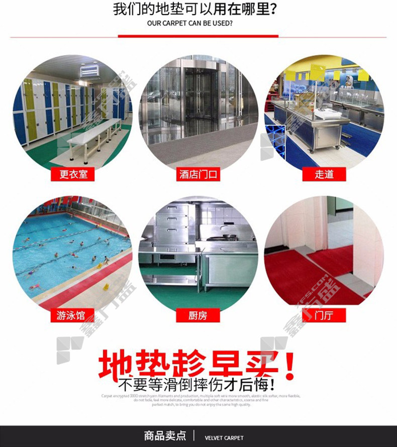 防滑地垫使用场景:酒店、厨房、游泳池等