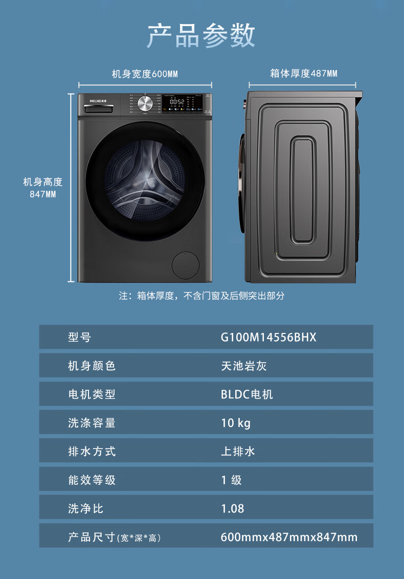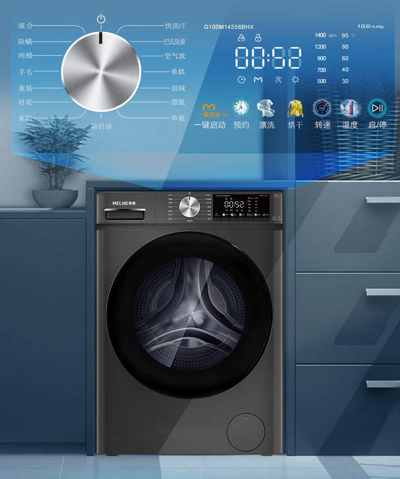 商品名称: 美菱 MELNG G100M14556BHX 滚筒洗烘 10kg 一级能效 灰色