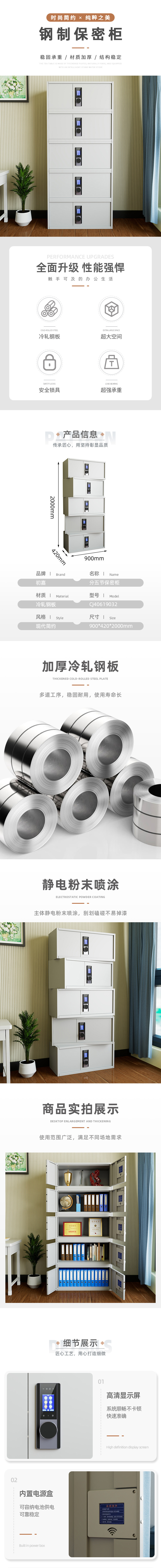 商品名称: 初嘉 CJ40619032 分五节人脸识别资料保密柜 900*420*2000mm 灰色
