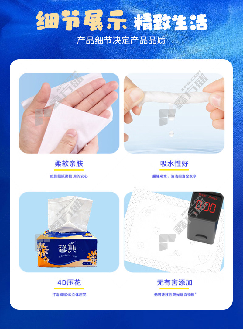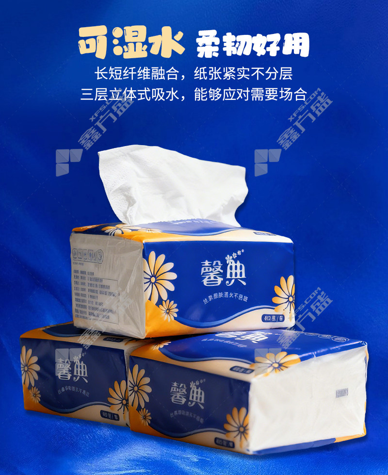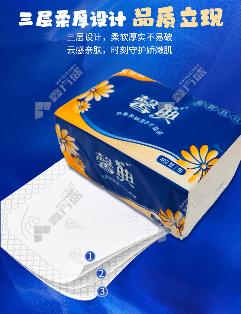 首页 首页 > 馨典 XD-2239 超韧软抽纸巾 3层 134抽 134抽/包 6包/提 XD-6026 130*180mm 130g