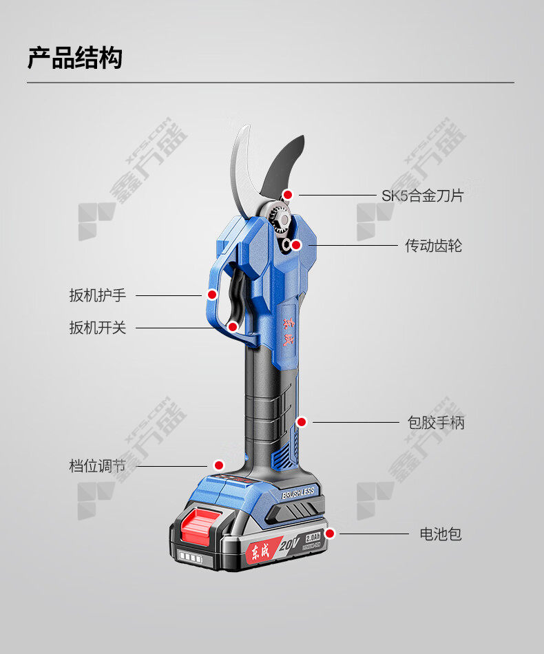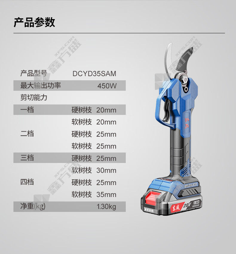 商品名称: 东成 DCYD35SAM 充电式无刷修枝剪 20mm~35mm 两电一充 20V/2.0Ah*2组