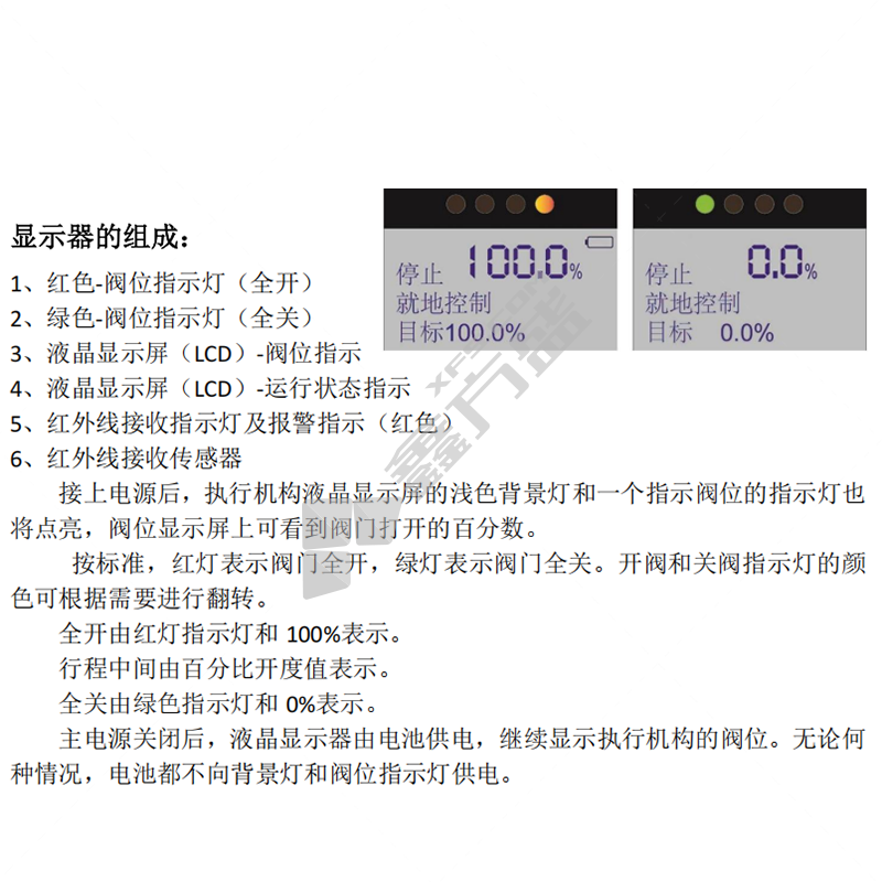 电动执行机构. EH180 输入信号:开关量信号输出信号:阀位反馈信号:4-20mA.DC负载阻抗≤750Ω输出轴力矩:1800Nm死区:0.1~9.9%可调默认设置为≤0.5%中途限位开限位设置范围为40%~10.