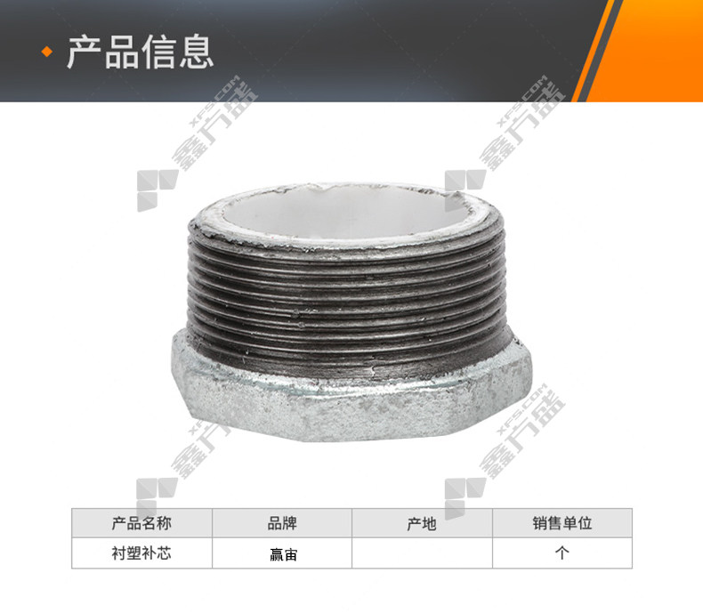 商品名称: 赢宙 玛钢衬塑补芯 DN40*15 1.6MPa 18-25度