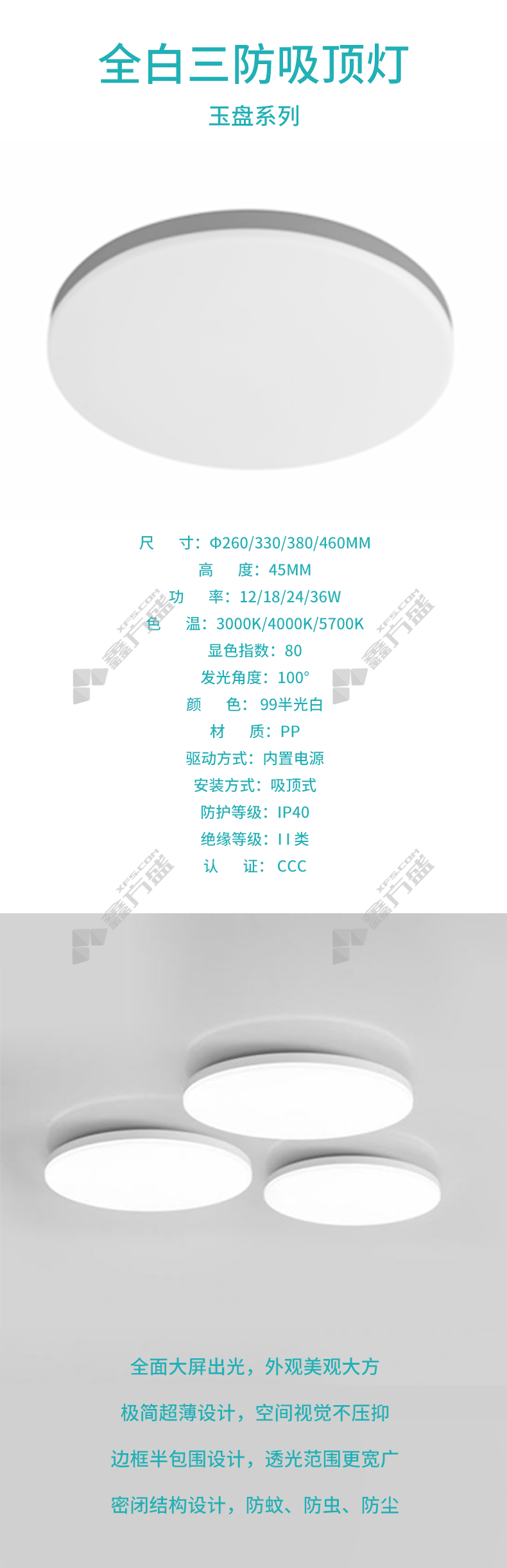 包装清单:全白三防吸顶灯*1个