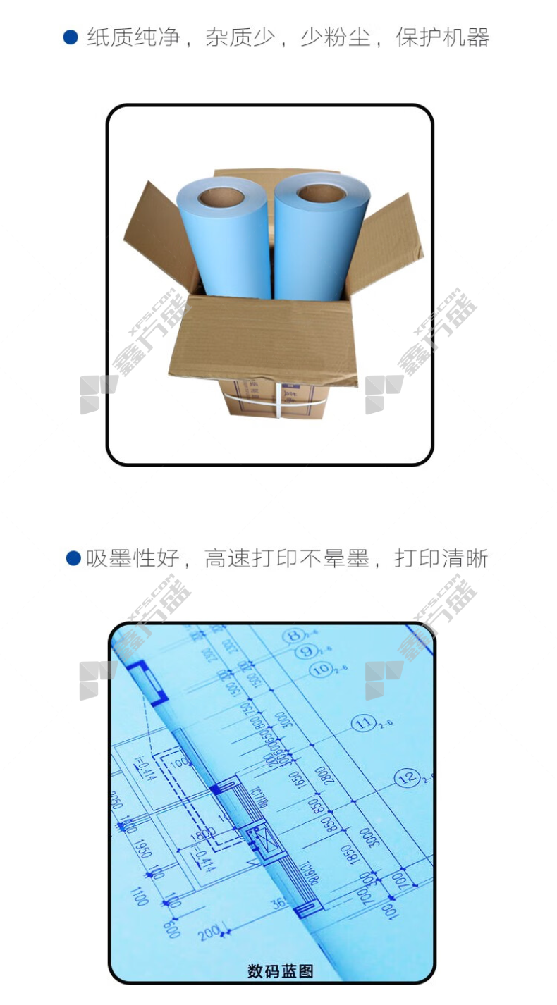 商品名称: 蓝鸽 3寸管工程蓝图纸 80g 620mm*150m