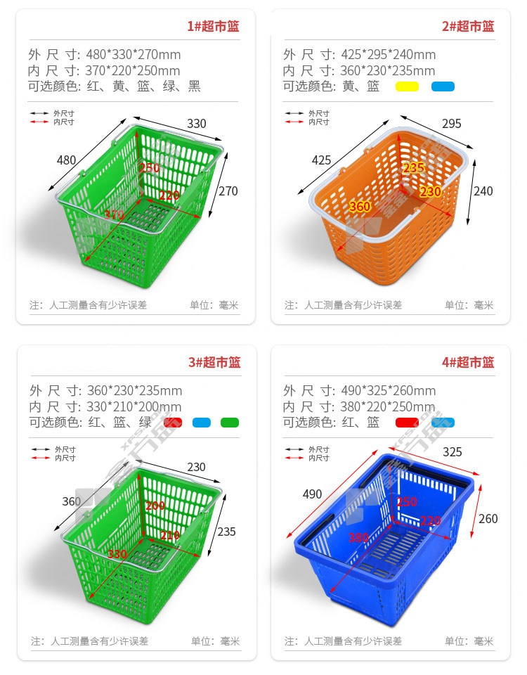 商品名称: 赢宙 塑料手提篮 3# 360*230*235mm 330*210*200mm 绿色