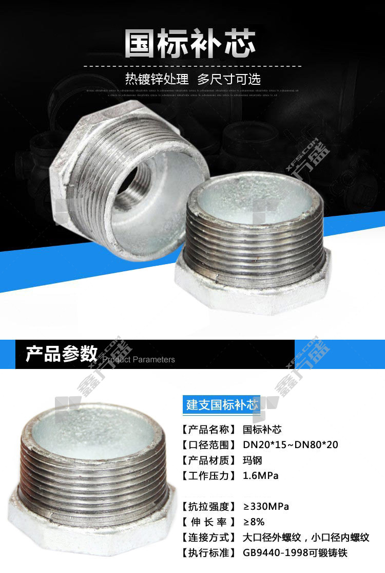 玛钢补芯材质:可锻铸铁+聚丙烯