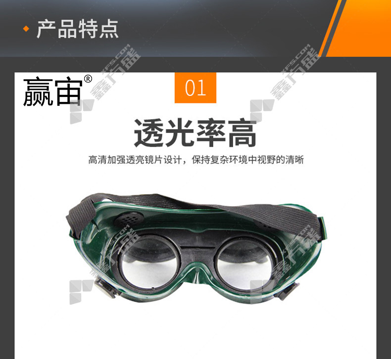 赢宙 防冲击 电焊双翻眼镜 绿色