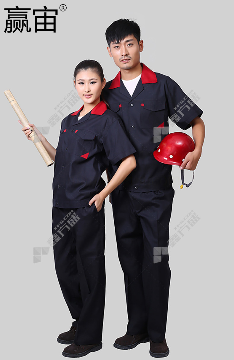 商品名称: 赢宙 GZ-102 深蓝夏季透气耐磨短袖工作服套装 M 深蓝色