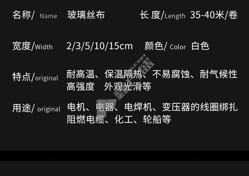 商品名称: B243 玻璃丝布. WF2416529 250*50m 卷.