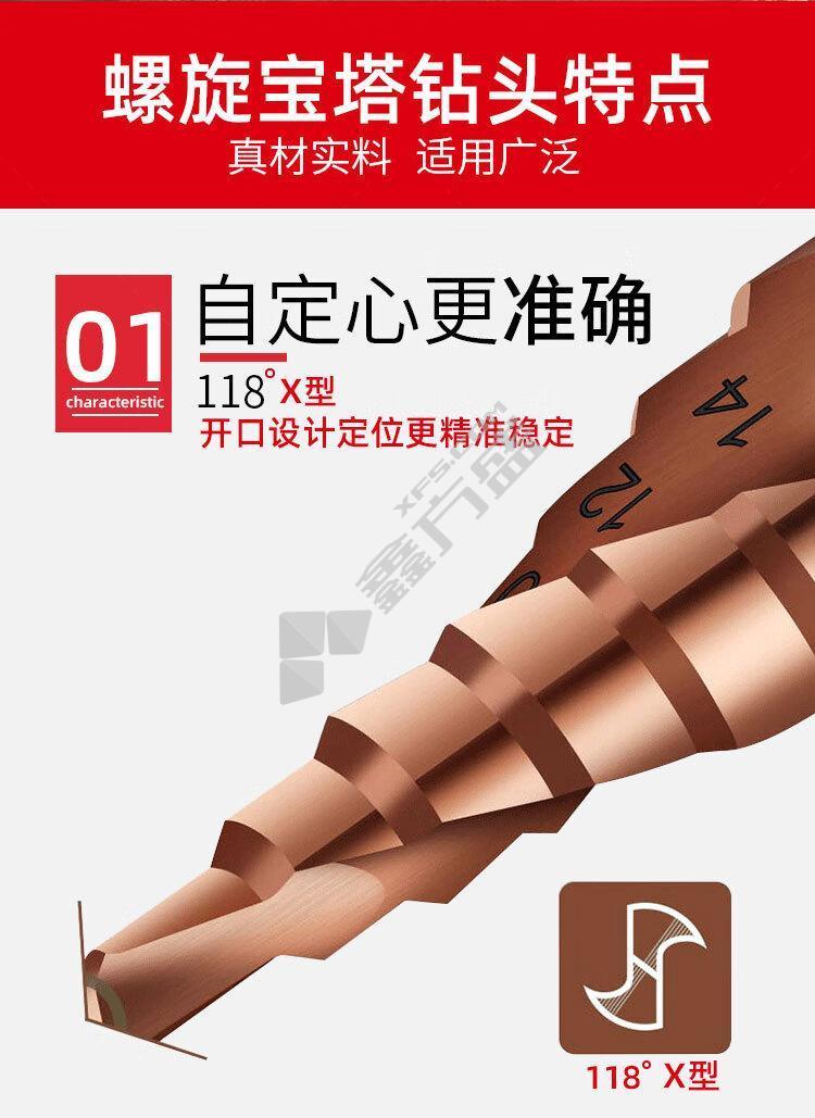 商品名称: H288 含钴宝塔钻头. M35 15阶 4-32mm 只.