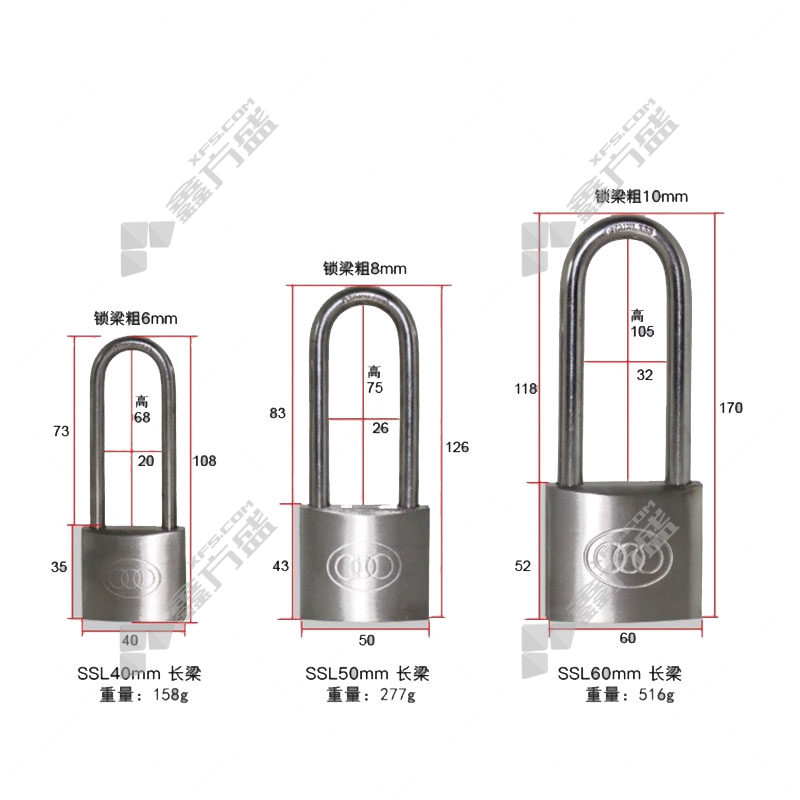 商品名称: 赢宙 长梁不锈钢挂锁 SSL60 60mm