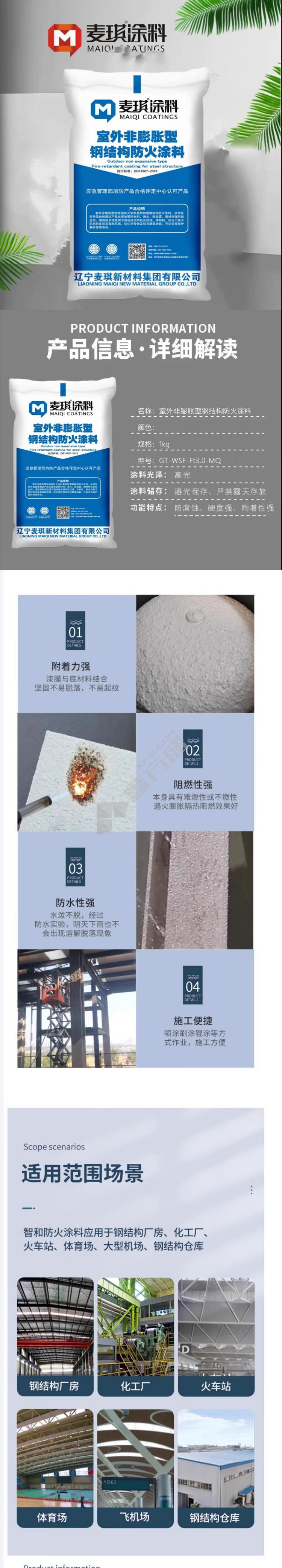 商品名称: 室外非膨胀型钢结构防火涂料. GT-WSF-Ft3.0-MQ 25kg/桶.
